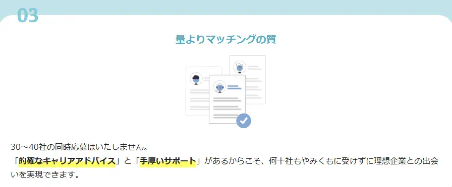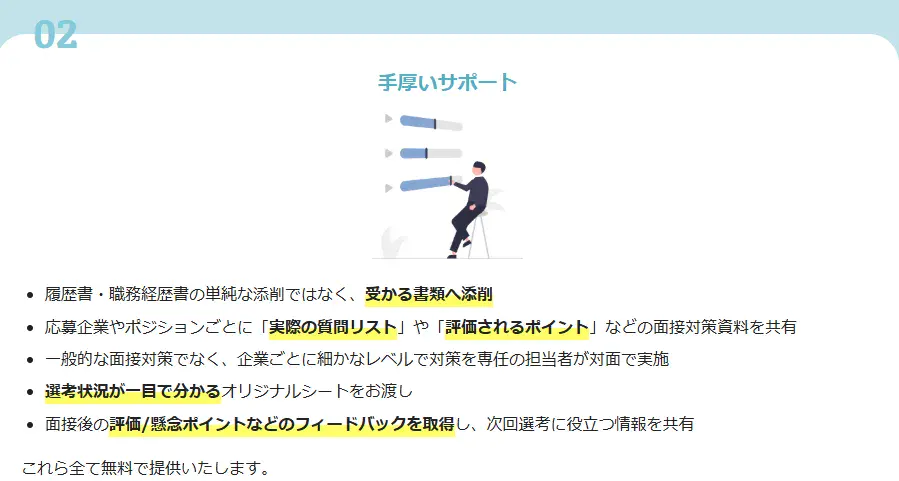 面接対策では選考企業ならではの質問リストなどを共有してくれるため、精度の高い対策に期待が持てますよ。