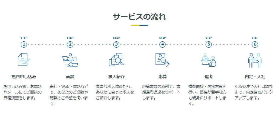 選考では、書類の添削や模擬面接など、あなたが内定を獲得できるようにさまざまな対策を実施してくれるため、転職経験が少ない方でも安心して転職活動に専念できます。