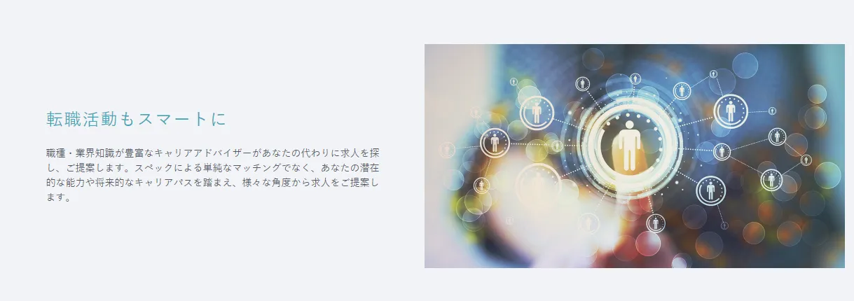 採用コストの増加や企業機密などの理由で公開できない非公開求人が多数。スピード選考&高年収&高待遇求人が多数あり。利用者にとっては大変ありがたい