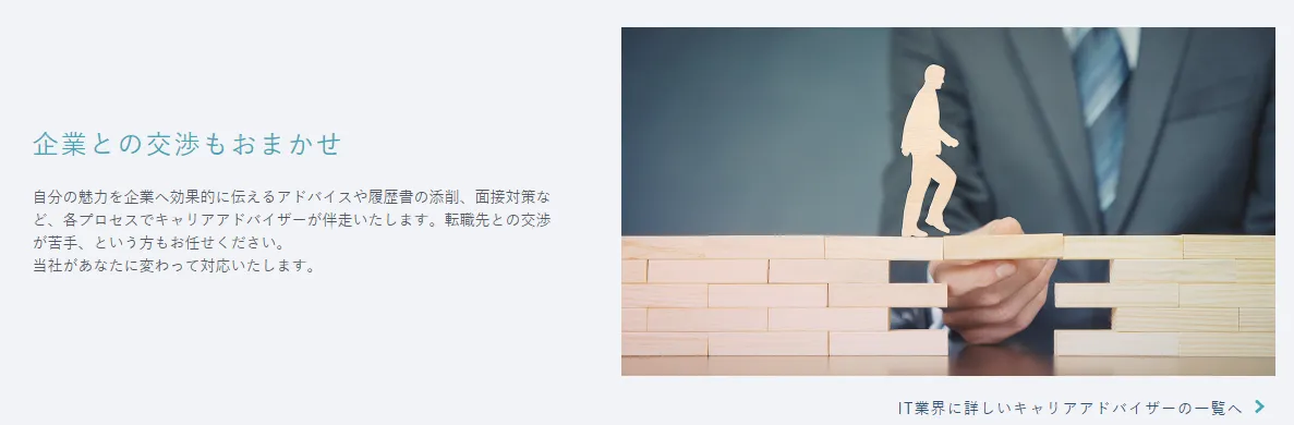 しかし、リクルートエージェントITでは、キャリアアドバイザーがあなたの代わりに採用担当者に交渉してくれるため、納得した状態で入社できます。