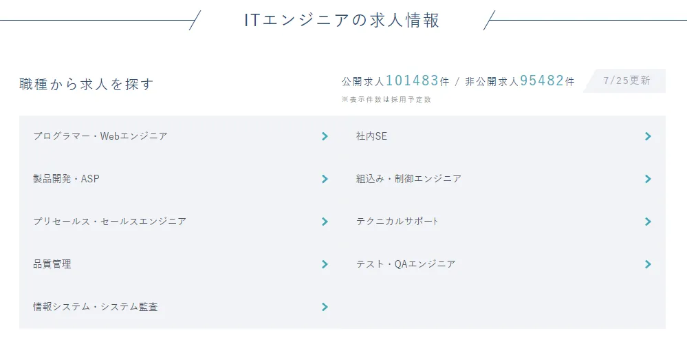 2023年7月時点で公開されているIT求人数は10万1,483件、非公開求人数が9万5,482件です。そのため、全国各地の豊富なIT求人から自分に合った求人を見つけられるでしょう。