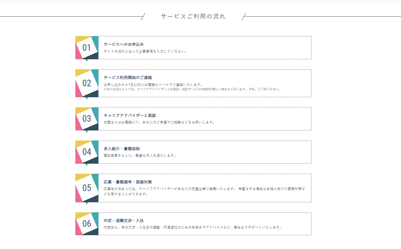 次に、リクルートエージェント ITの利用手順を見ていきましょう。
